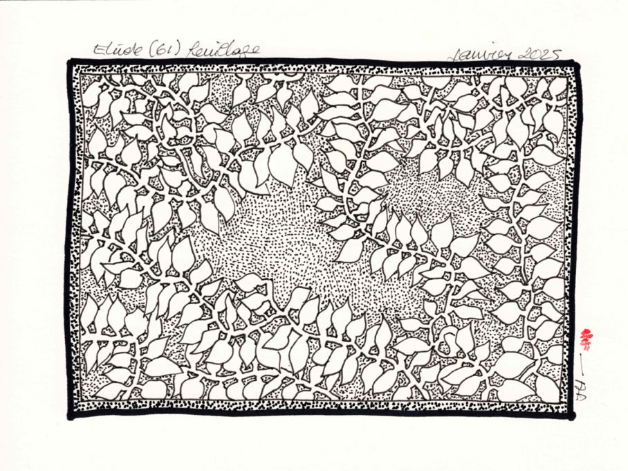 Dans cette série, le feuillage n'est plus un simple arrière-plan, un motif décoratif ou un « cache-sexe », comme dans la plupart des représentations d’Adam et Ève. Ici, il devient une figure autonome, se libérant de ses fonctions habituelles pour se montrer comme le sujet même de l’image.