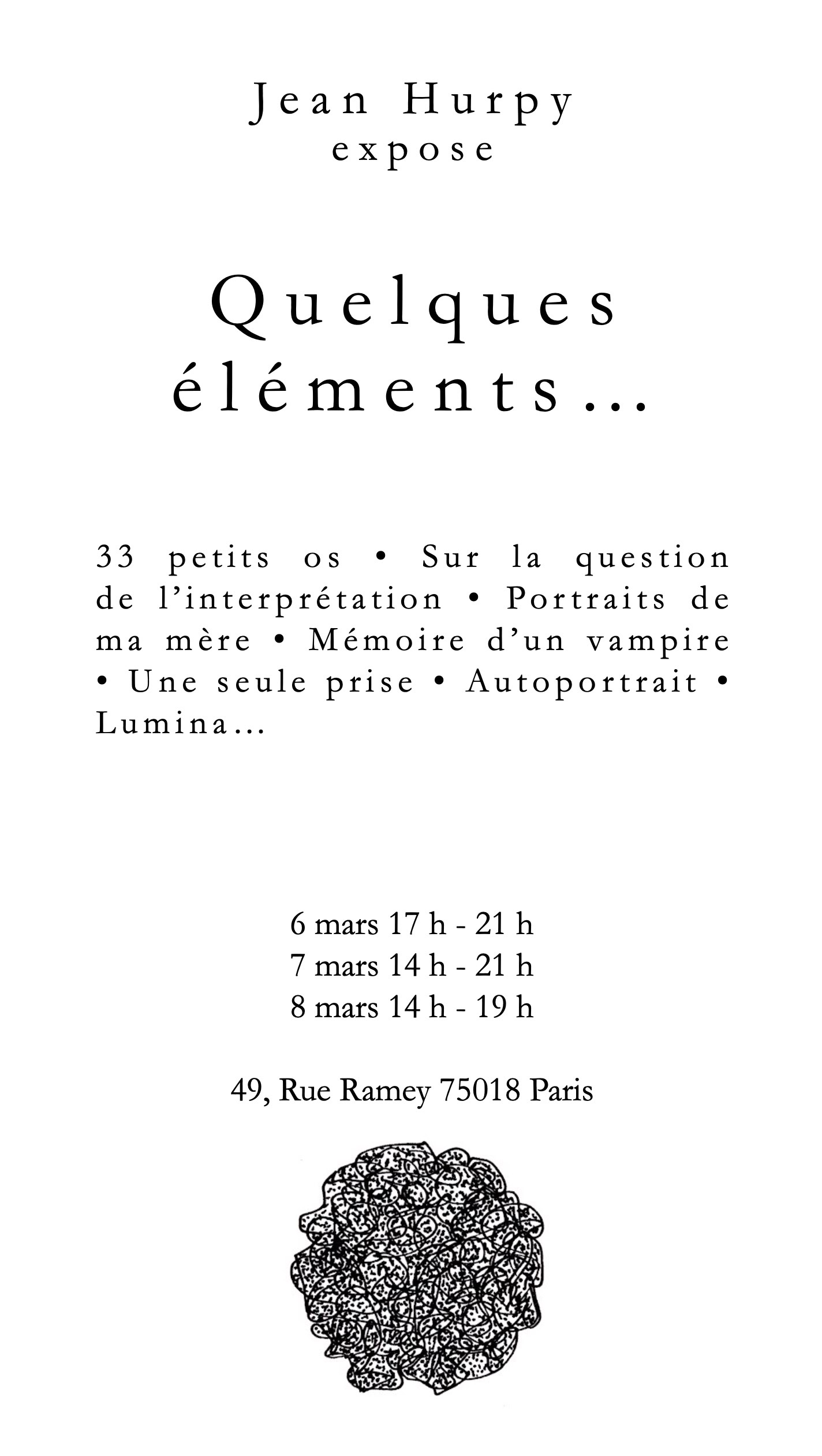 33 petits os • Sur la question de l’interprétation • Portraits de ma mère • Mémoire d’un vampire • Une seule prise • Autoportrait • Lumina…