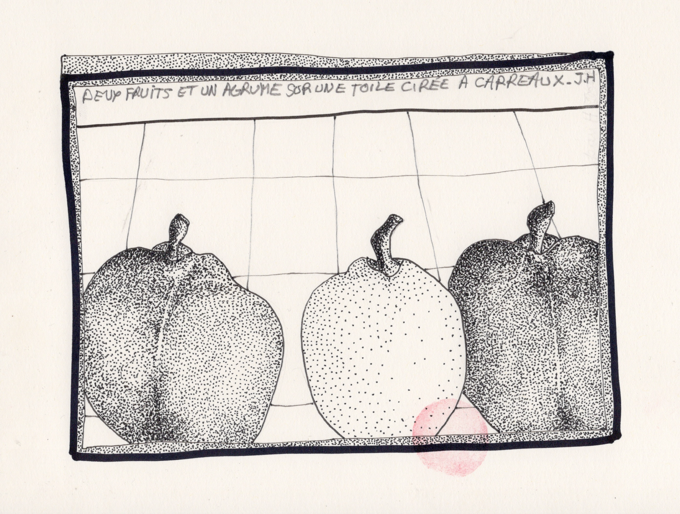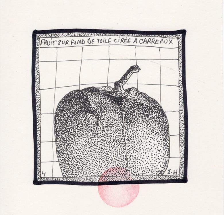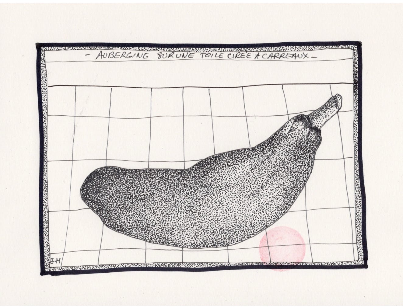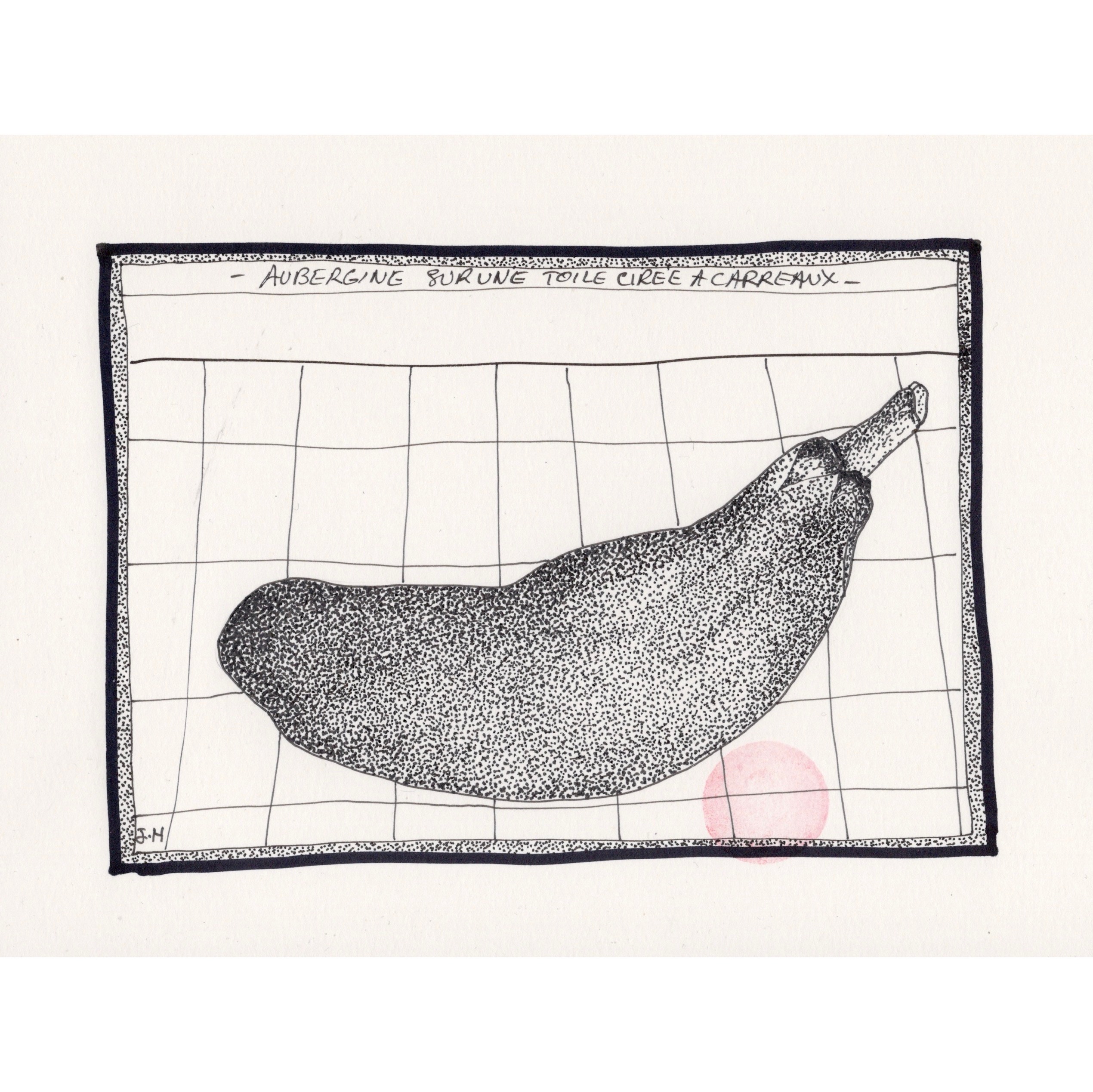 sur une toile cirée à carreaux.