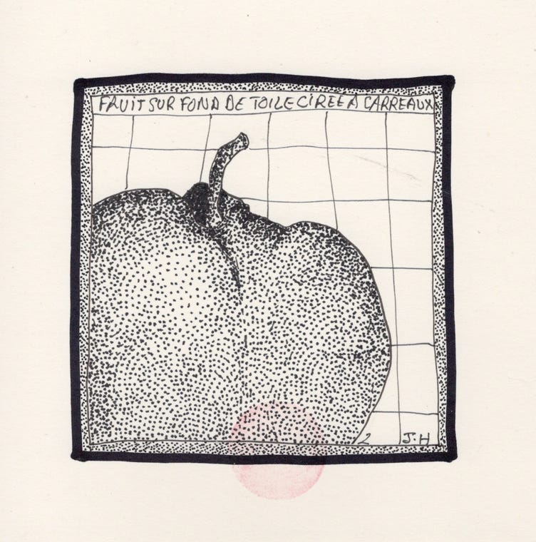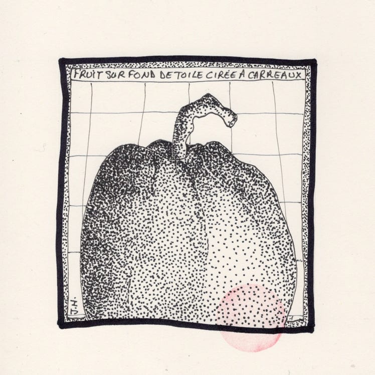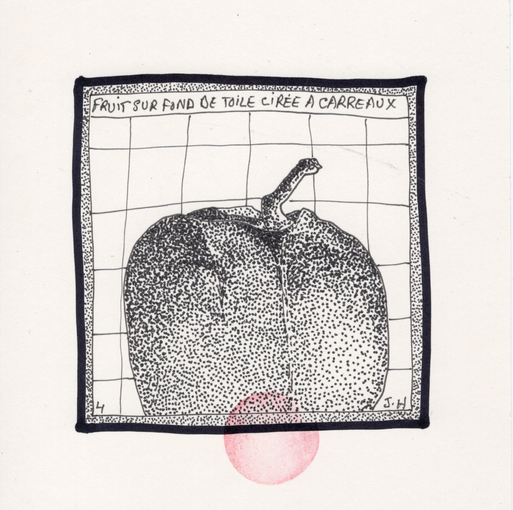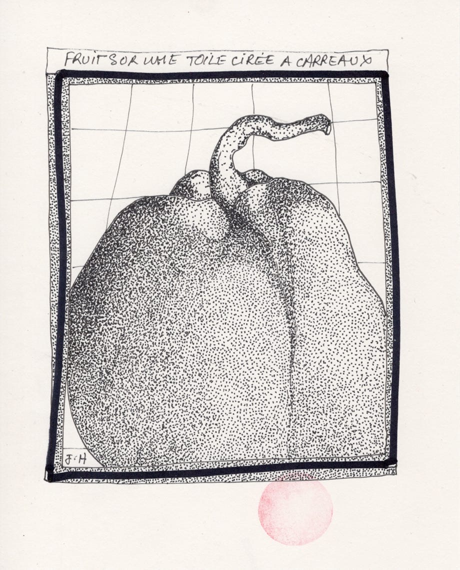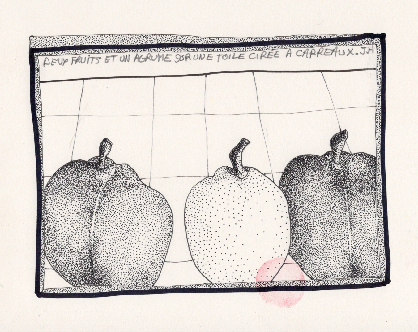 sur une toile cirée à carreaux.