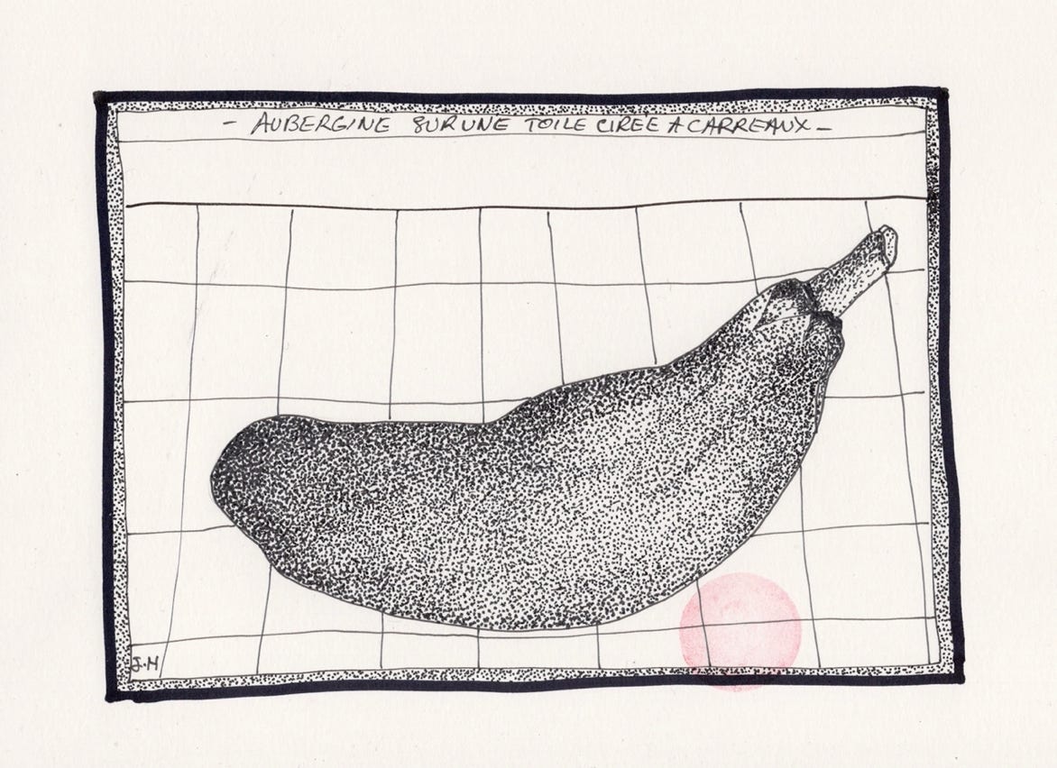 Aubergine sur une toile cirée à carreaux