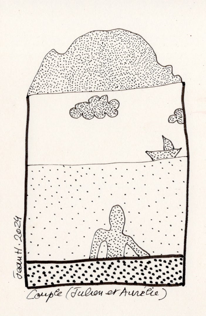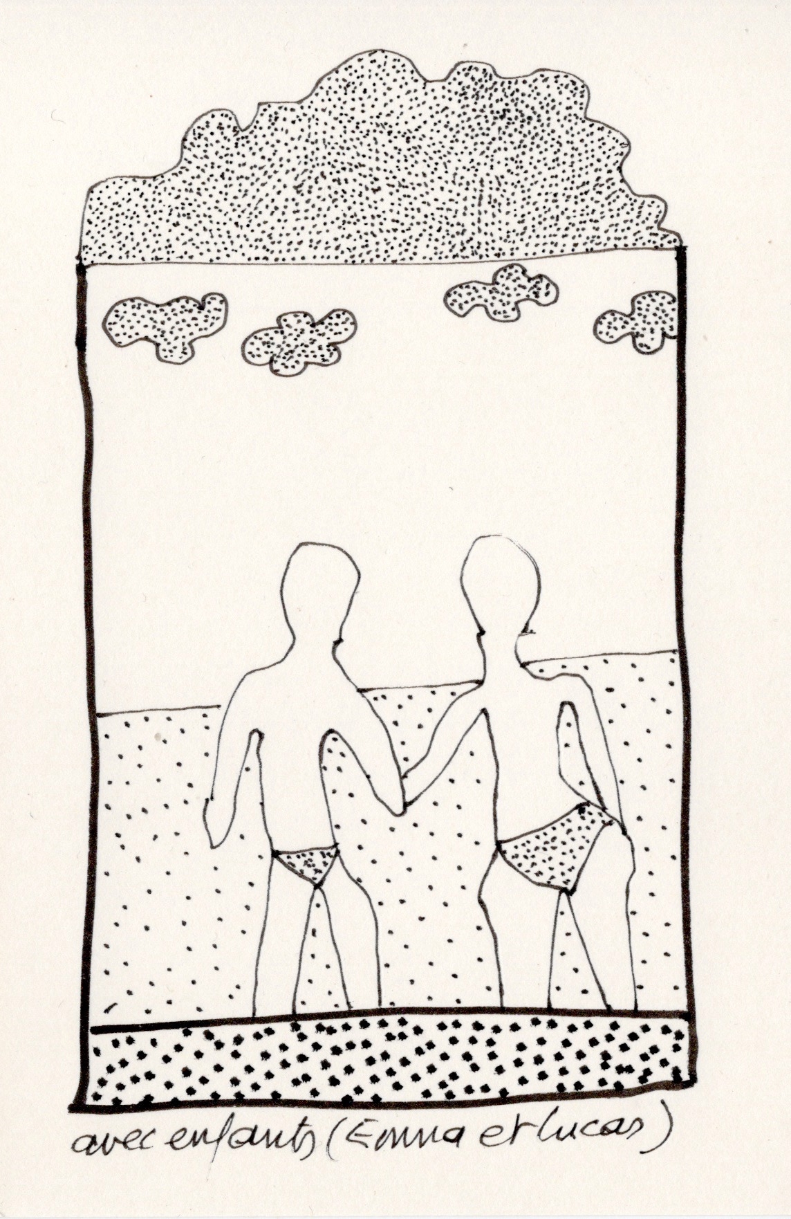 Couple (Julien et Aurélie) avec 2 enfants (Emma et Lucas) en bord de mer (juillet)