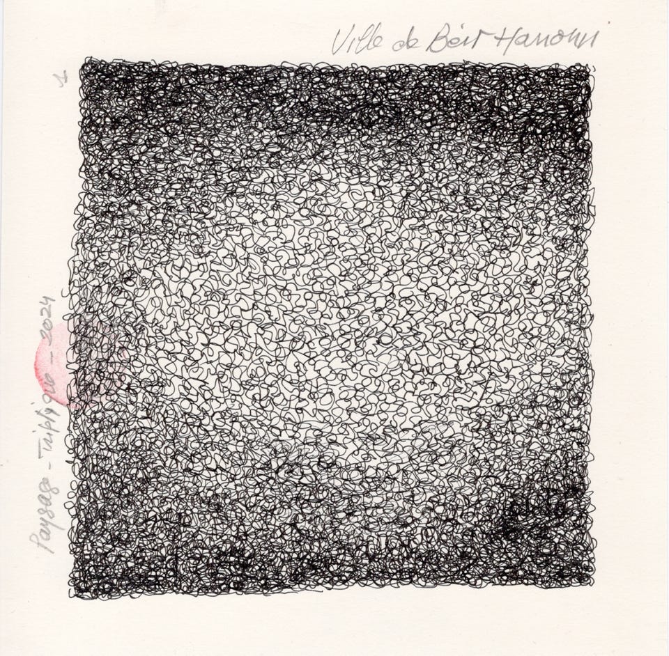 Dans ce triptyque, Jean Hurpy représente la ville de Beit Hanoun, marquée par le conflit israélo-palestinien.